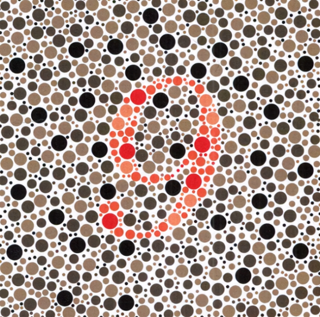 第一幅图,大家首先看一下,这幅图是两个阿拉伯数字,他是绿色的圆点组成,如果大家不能够识别出来的话,那就是绿色色弱!