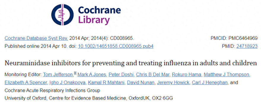 Cochrane的综述还具有证据对奥司他韦治疗流感的作用机制提出了质疑。