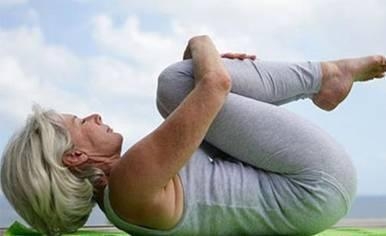 仰卧,双腿双脚并拢;屈膝,双手抱膝,头部尽量向膝盖靠拢,直至感到颈部到背部的脊椎有轻微拉伸感即可;返回原位,重复10次。