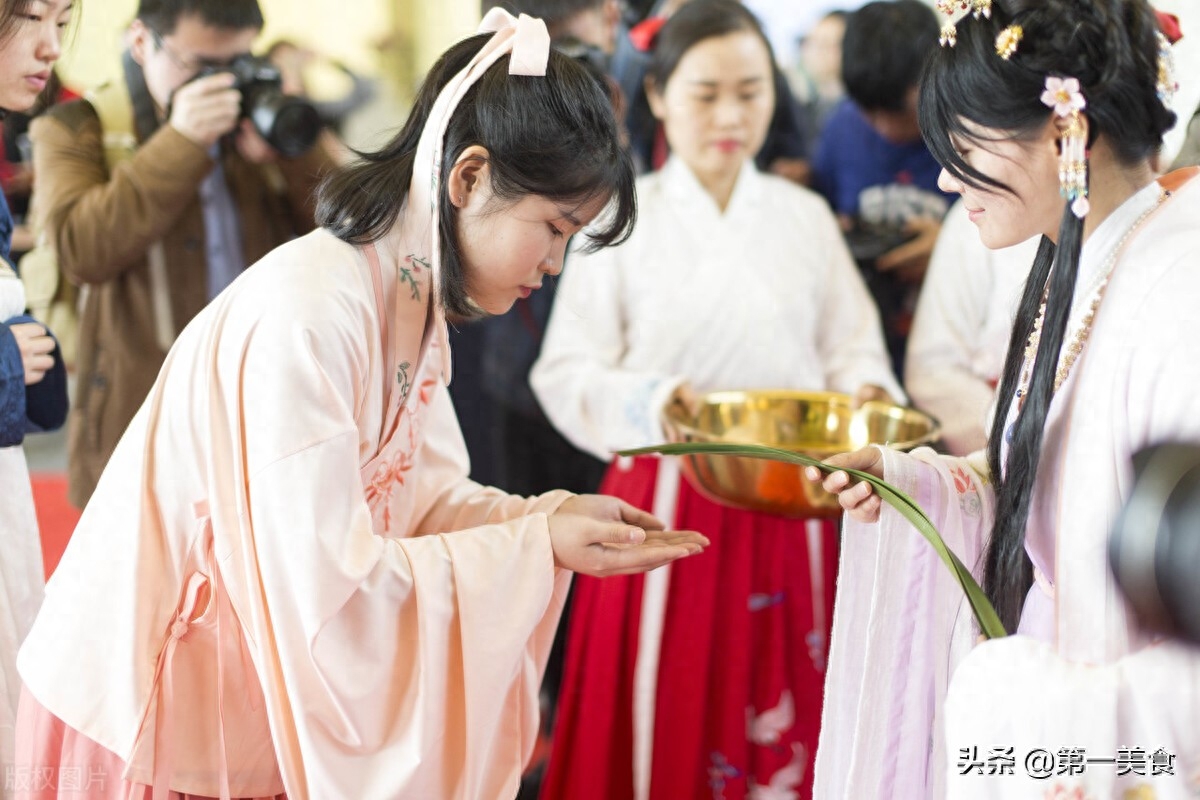 由于三月气温还不稳定,在后来的演变中,成为青年才俊流觞曲水,女儿行“及笄礼”的活动。正如王羲之《兰亭集序》中所记载。