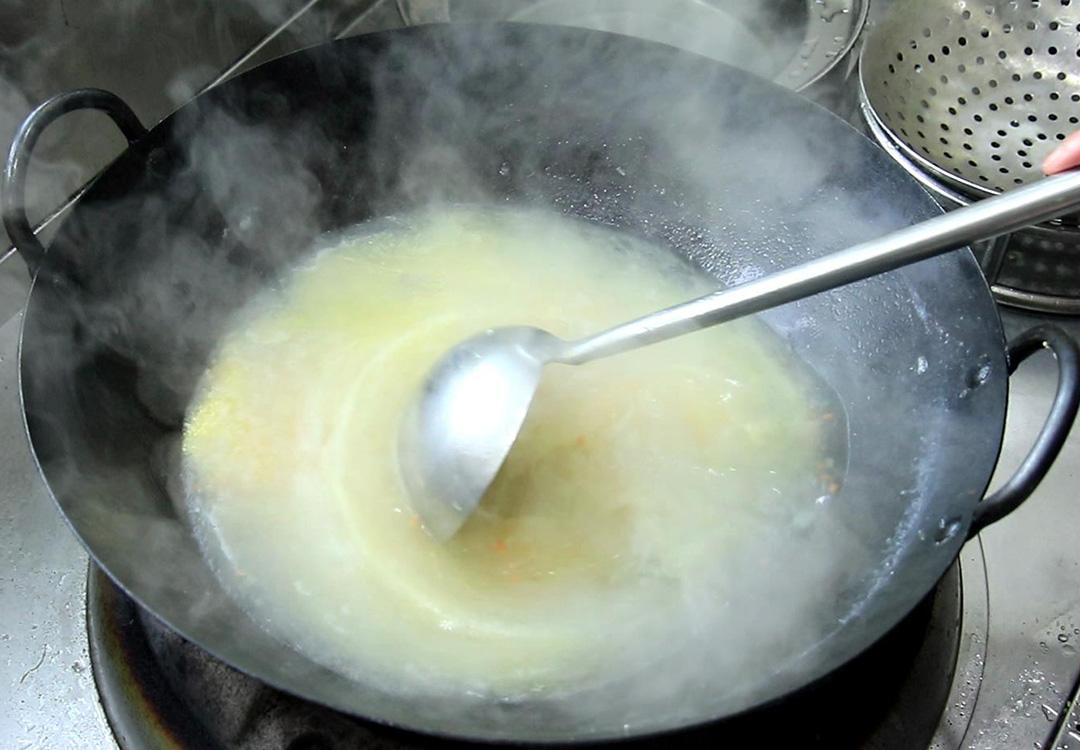 3.锅内多烧一些油,油温四成热,把肉丝放入锅中,肉丝定型以后滑油30秒钟,肉丝变白后立即捞出控油,肉丝滑油的时间不要太长,否则口感不够鲜嫩。