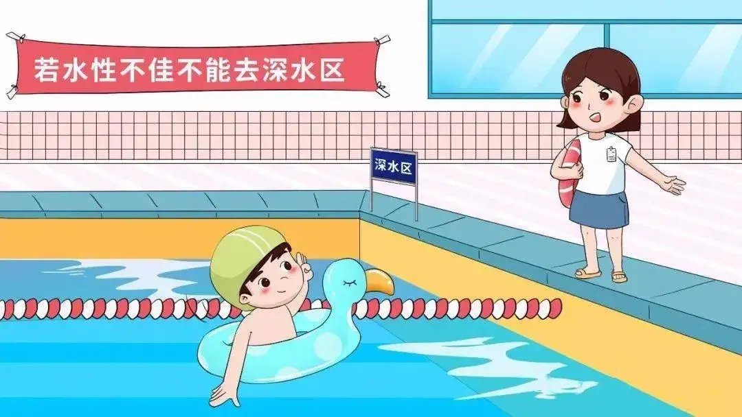 不会游泳者,不要游到深水区,即使带着救生圈也不安全。游泳馆湿滑,请遵守游泳馆相关规定,不追逐打闹;家长要看管好孩子,不要离开大人的视线,不贸然让孩子独自前往深水区域。